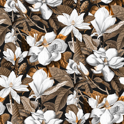 Kolorystyka? Klasyka w nowym wydaniu – kremowe i białe kwiaty tańczą na tle ciepłych brązów i delikatnej czerni. To jak połączenie porannej kawy z mlekiem i jesiennego spaceru po parku – trochę nostalgii, dużo przytulności i odrobina stylu vintage.