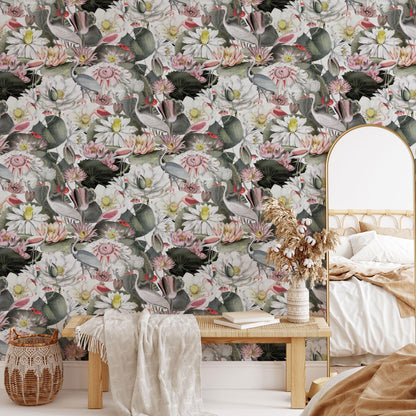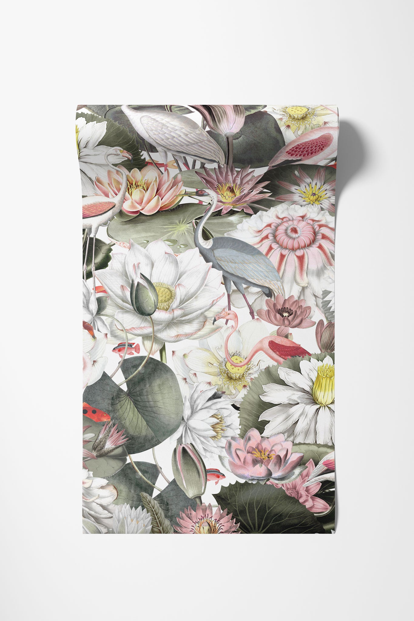 Tapeta „Floral Pond” – tam, gdzie żurawie plotkują z liliami