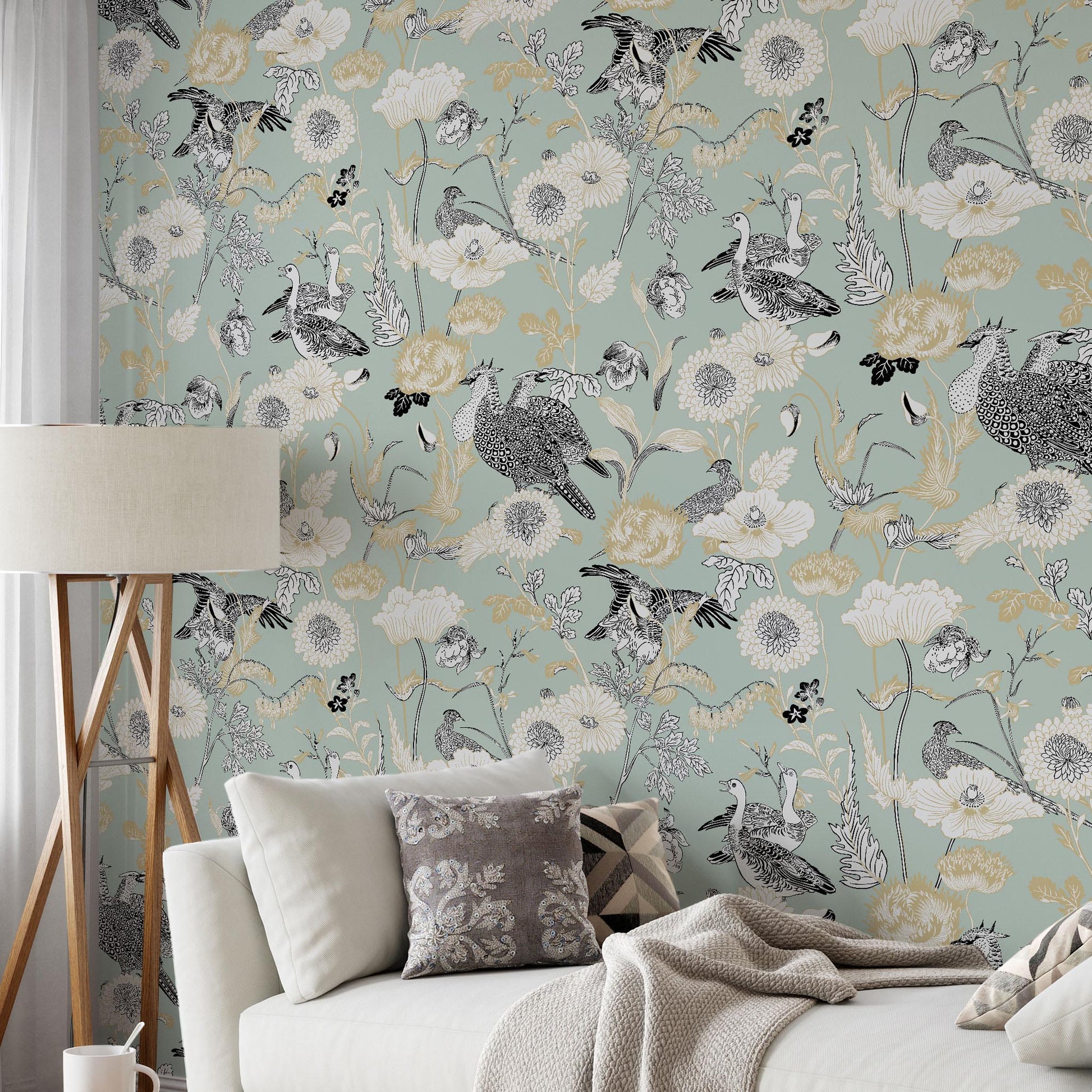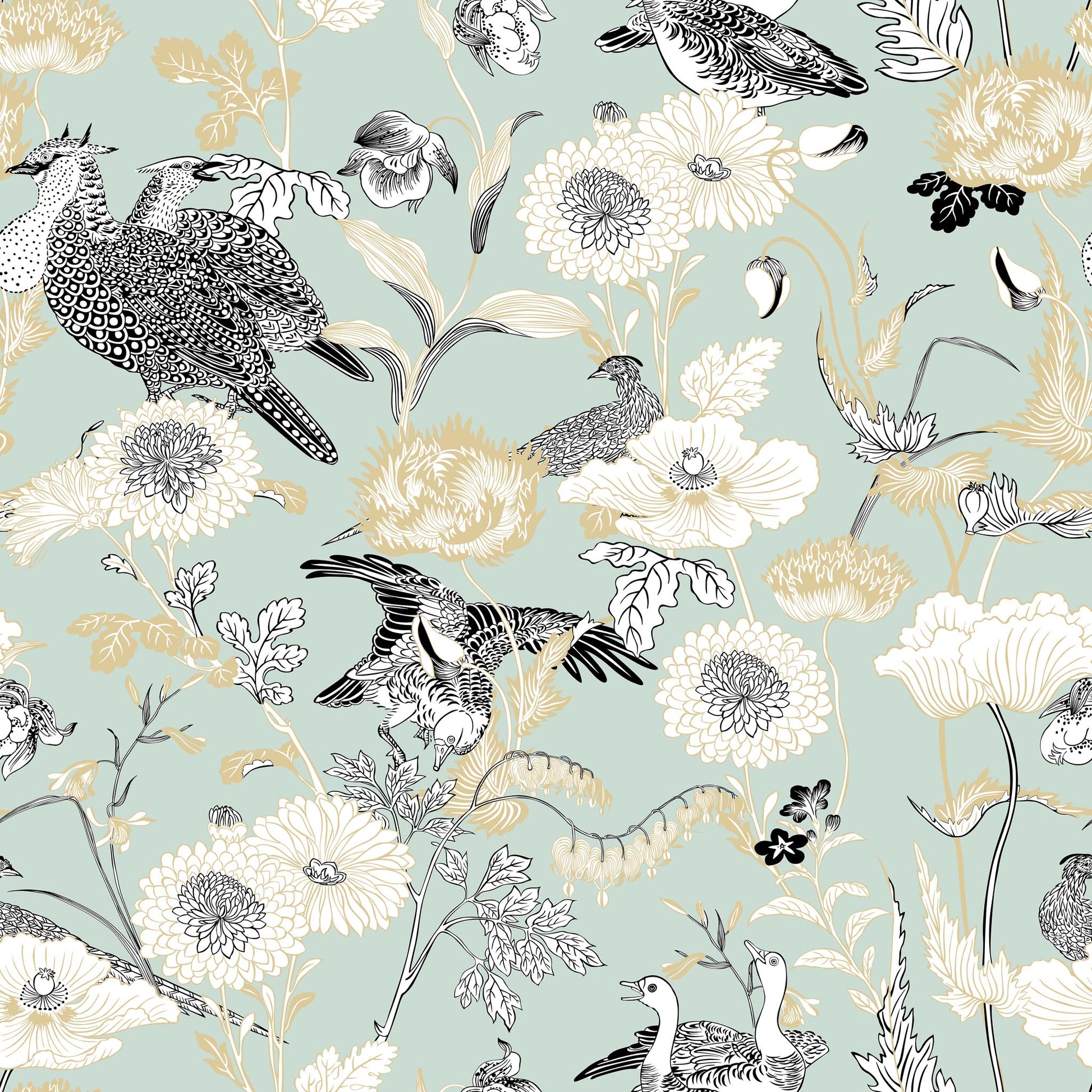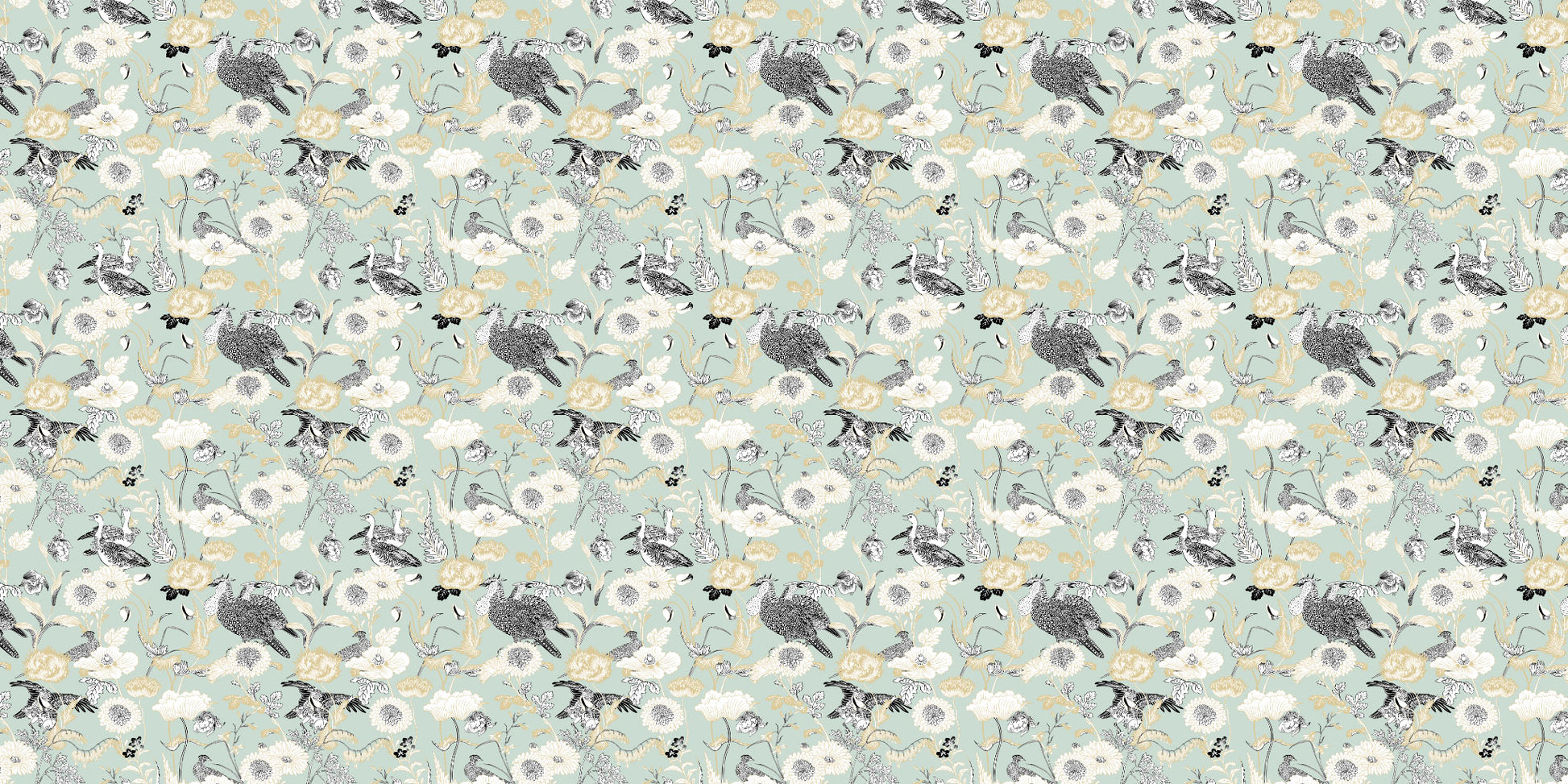 „Ginny Mint” to tapeta, która przenosi do świata ciszy, śpiewu ptaków i delikatnego wiatru wśród kwiatów. Utrzymana w miękkich tonach mięty i złamanej bieli, ozdobiona misternym rysunkiem ptaków i kwiatów, wygląda jak fragment starej ilustracji botanicznej – eleganckiej, subtelnej, ponadczasowej.