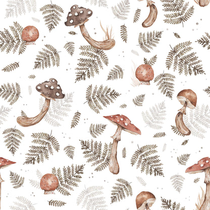 „Magic Forest” przenosi do świata dziecięcej wyobraźni – tam, gdzie rude wiewiórki, leśne sarenki i grzybki układają się w bajkowy rytm codziennych opowieści. Delikatny, akwarelowy rysunek w ciepłych odcieniach beżu, brązu i rdzawej czerwieni tworzy przytulną i harmonijną atmosferę.