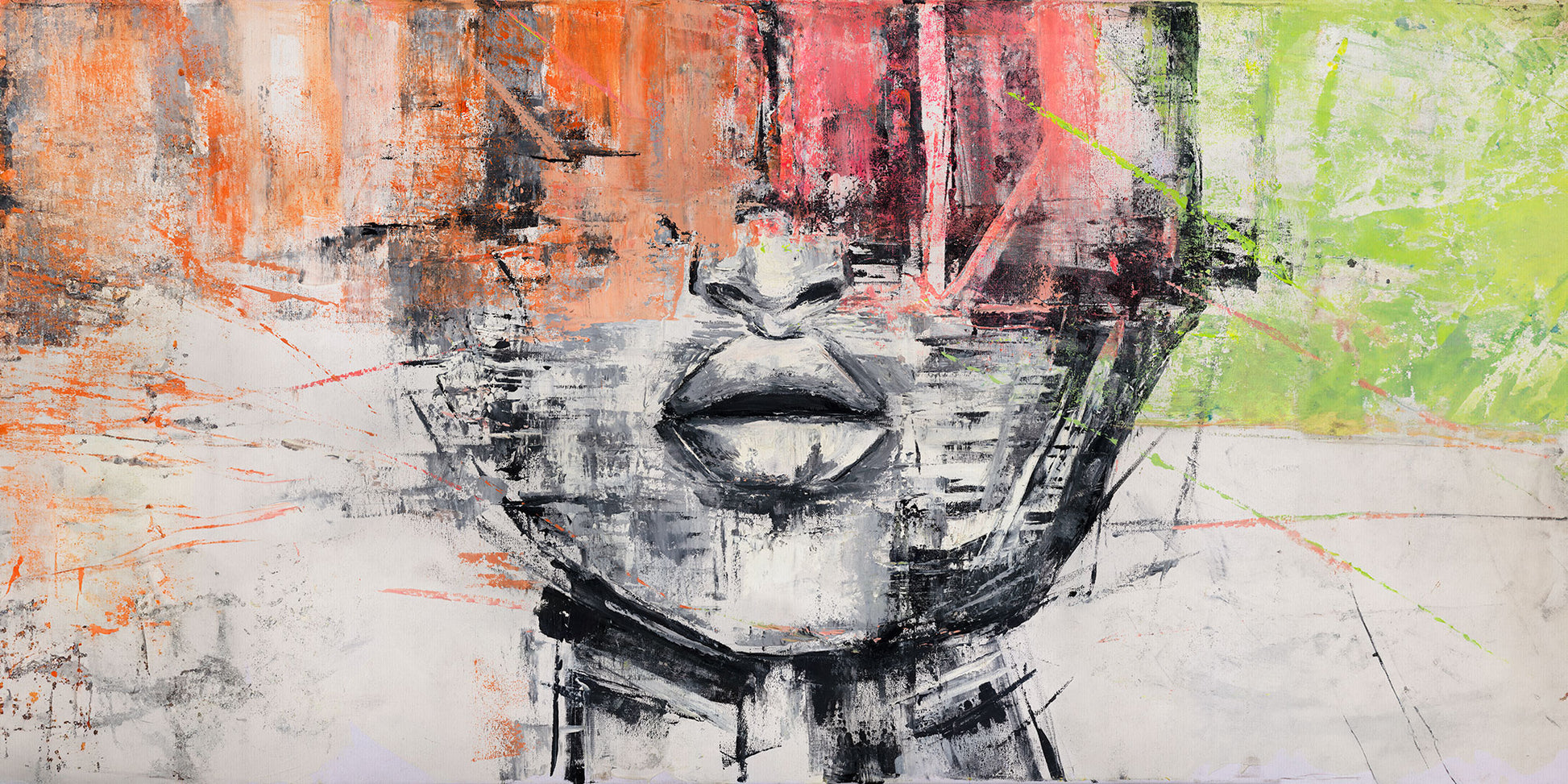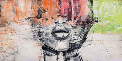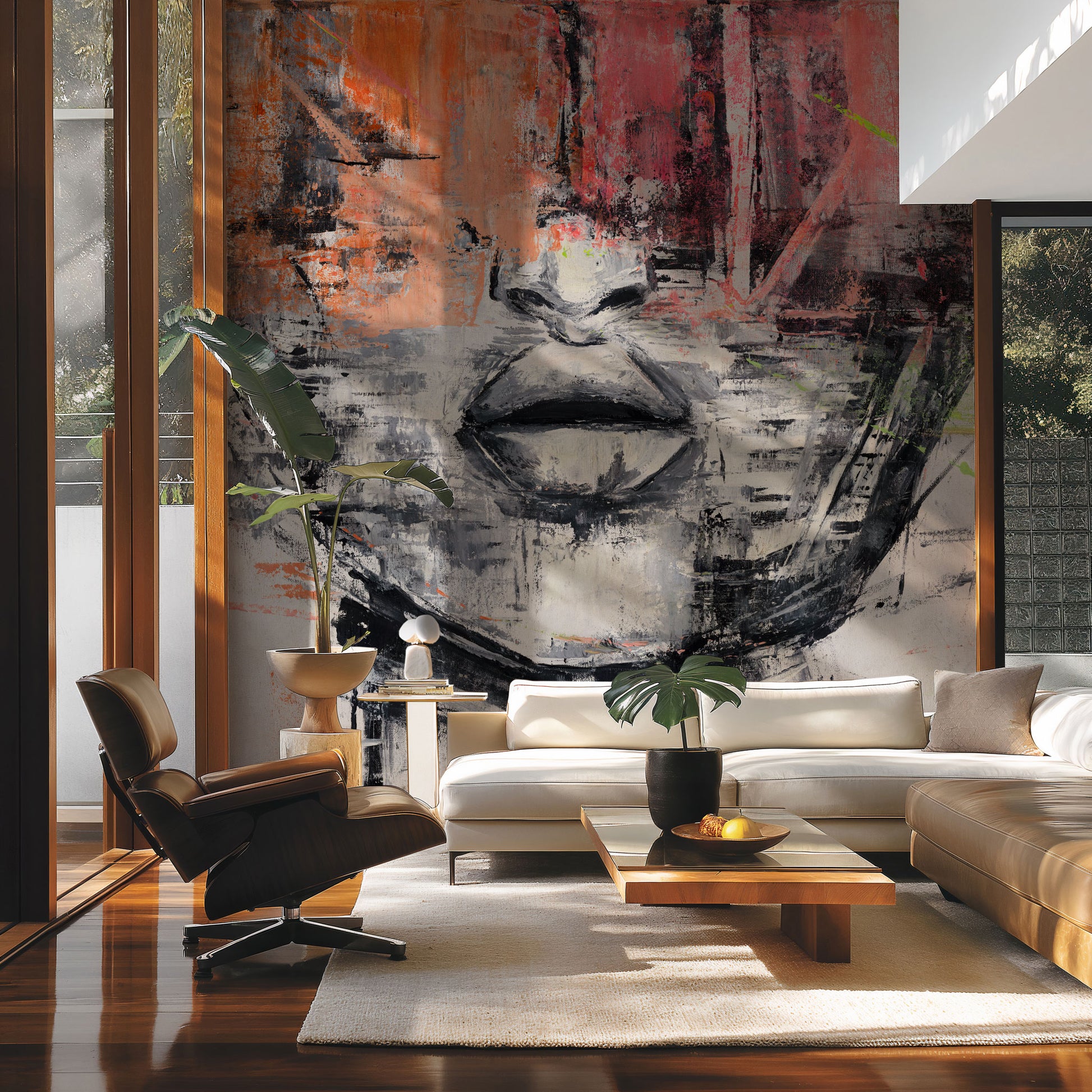 Dominująca twarz o ekspresyjnym wyrazie stanowi centrum emocji, przyciągając uwagę i nadając wnętrzu głębię, charakter oraz artystyczny pazur.