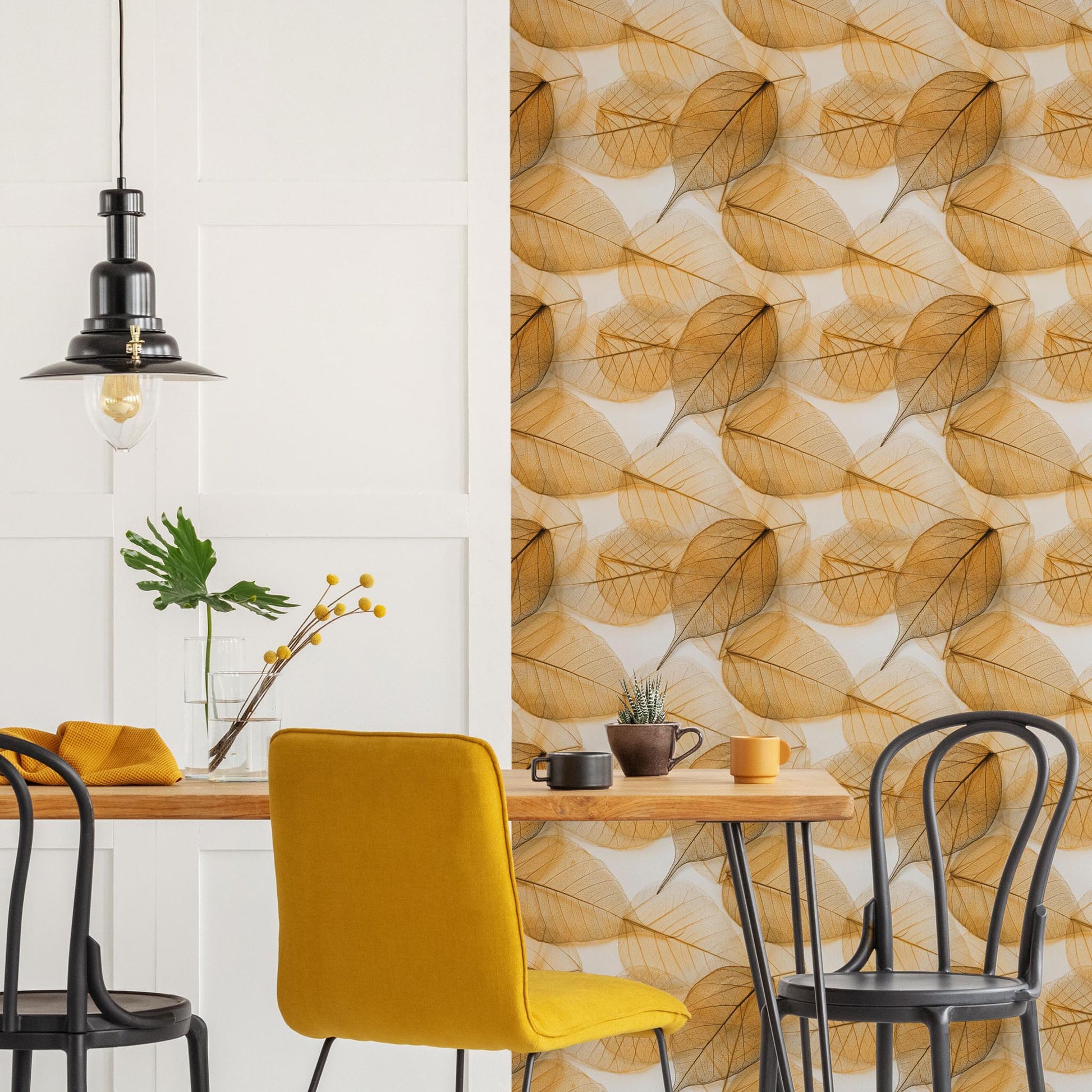 „Transparence” to tapeta, która wygląda jak muśnięcie światła. Delikatne liście unoszą się na tle niczym mgiełka – jakby ktoś uchwycił moment, gdy promienie słońca przefiltrowane przez jesienne korony drzew tańczą po ścianie. To wzór, który nie przytłacza – on oddycha, rozświetla i uspokaja.